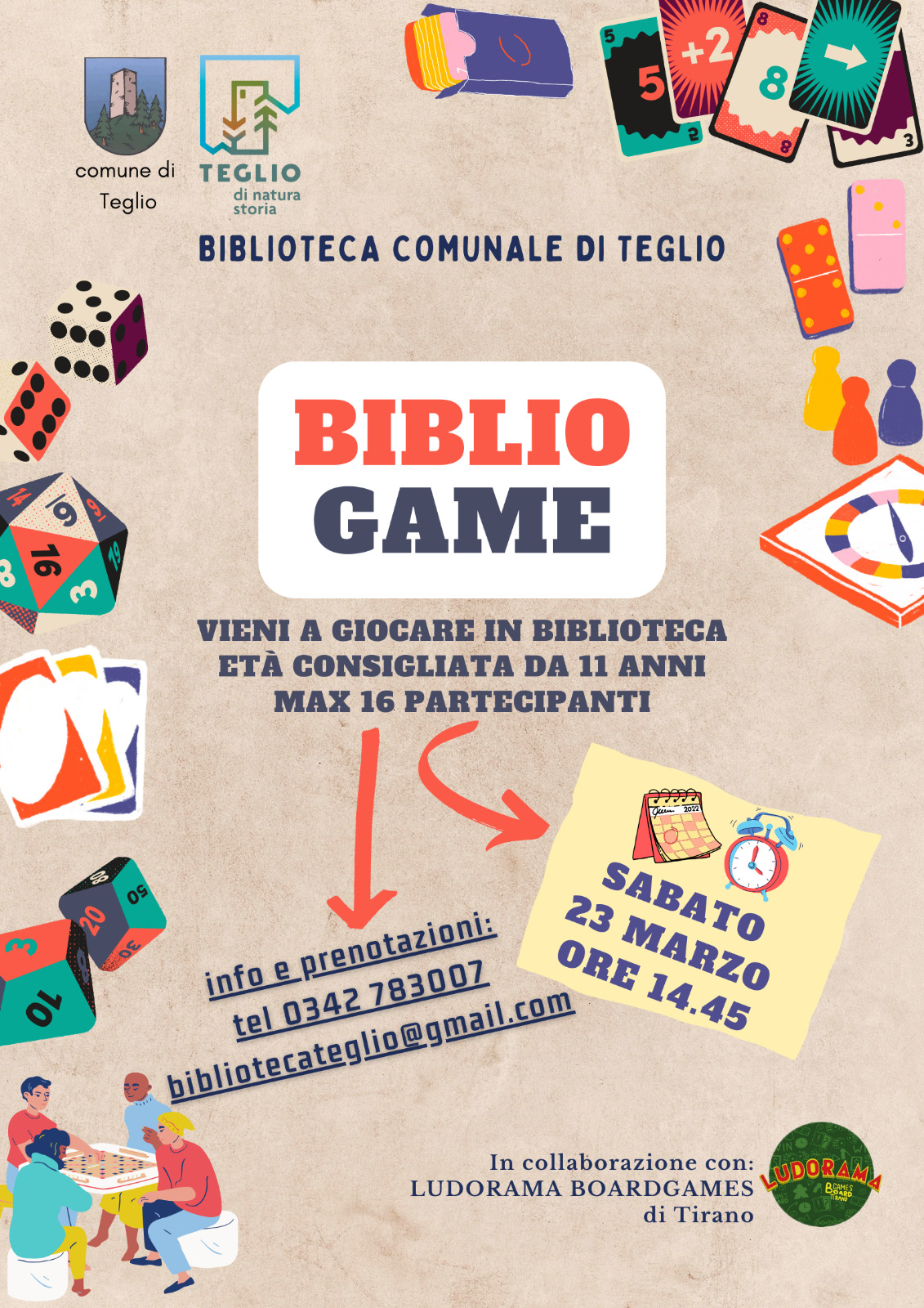 Biblioteca Comunale "E.Branchi", tel. +39 0342 783007, e-mail: bibliotecateglio@gmail.com