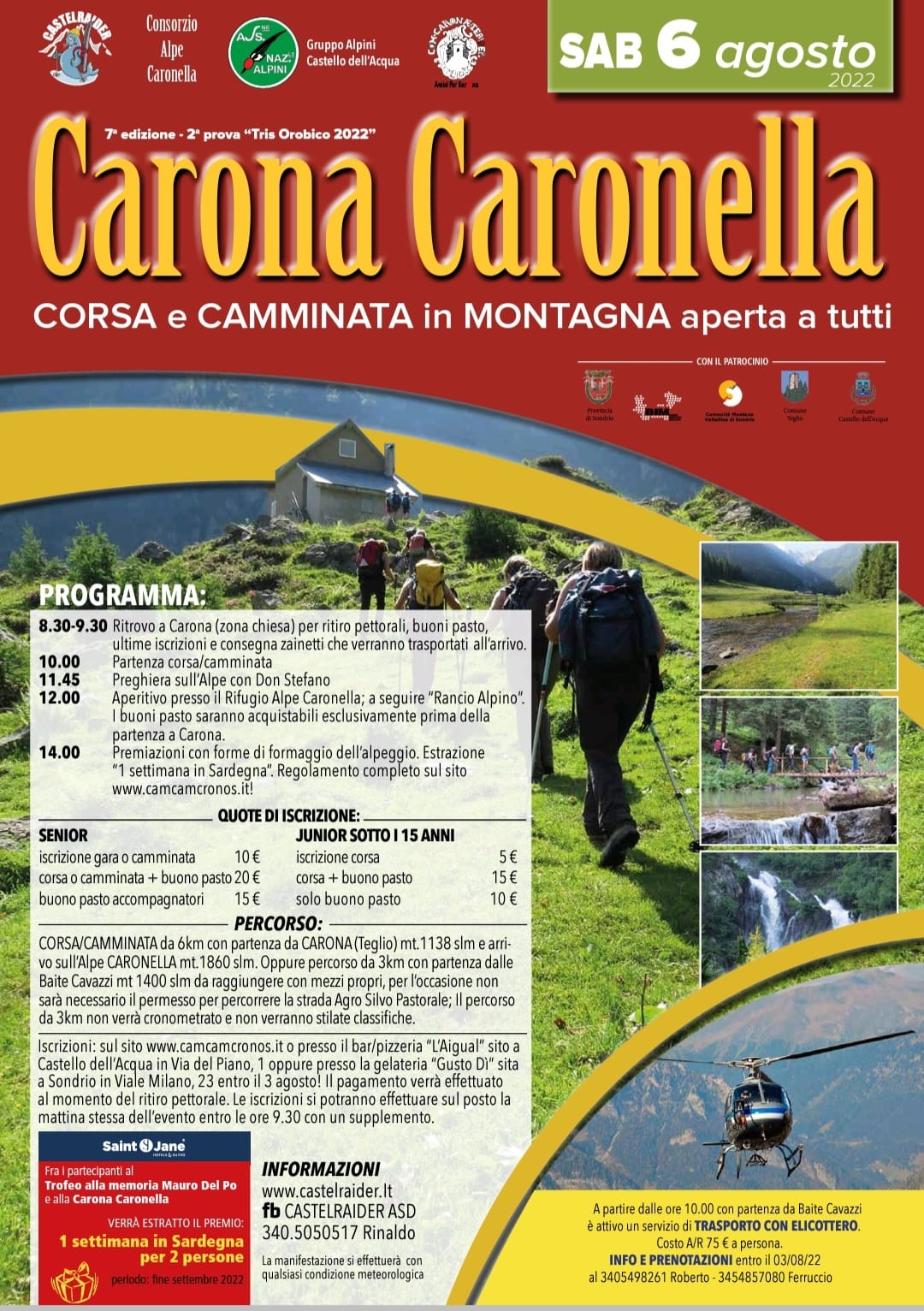 Ore 8.30/9.00 - Ritrovo a Carona (zona chiesa) per ritiro pettorali, buoni pasto e ultime iscrizioni