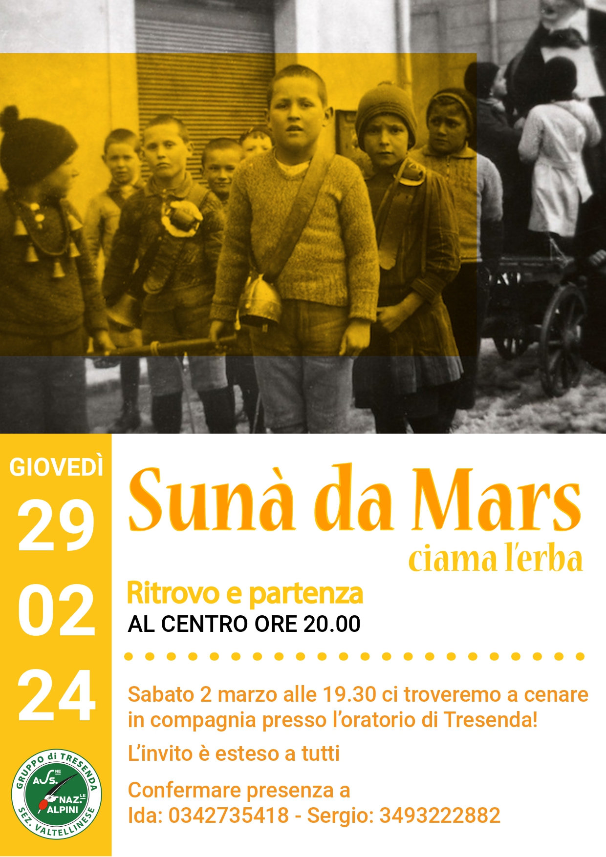 Nel buio della sera risuonano i campanacci per le vie di Tresenda insieme al Gruppo Alpini di Tresenda che vi aspettano per risvegliare la primavera!